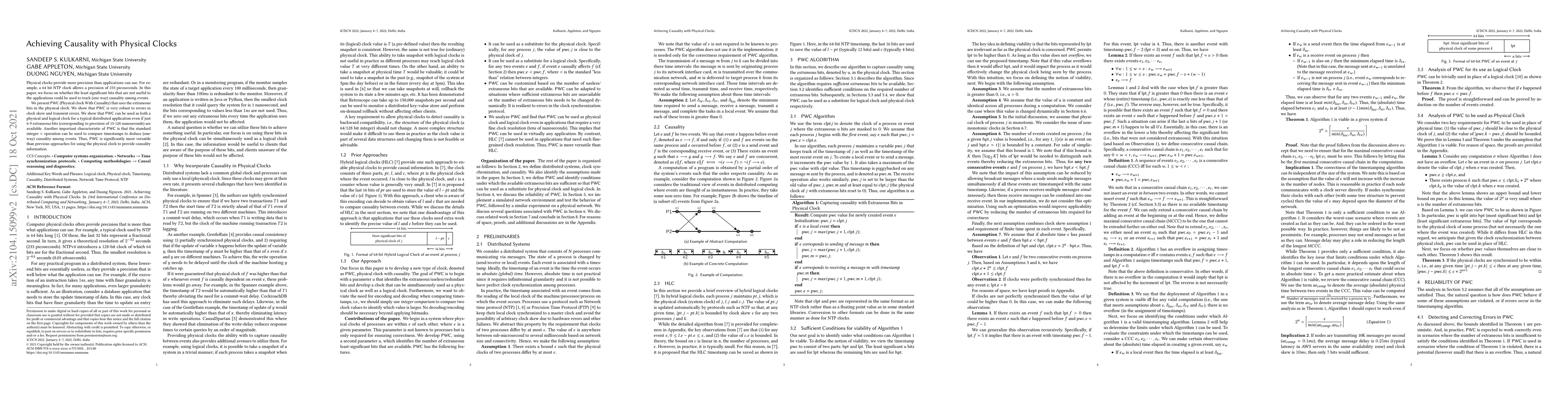 Physical clocks provide more precision than applications can use. For example, a 64 bit NTP clock allows a precision of 233 picoseconds. In this paper, we focus on whether the least significant bits that are not useful to the applications could be used to track (one way) causality among events. We present PWC (Physical clock With Causality) that uses the extraneous bits in the physical clock. We show that PWC is very robust to errors in clock skew and transient errors. We show that PWC can be used as both a physical and logical clock for a typical distributed application even if just 6-9 extraneous bits (corresponding to precision of 15-120 nanoseconds) are available. Another important characteristic of PWC is that the standard integer < operation can be used to compare timestamps to deduce (one-way) causality among events. Thus, PWC is significantly more versatile than previous approaches for using the physical clock to provide causality information.