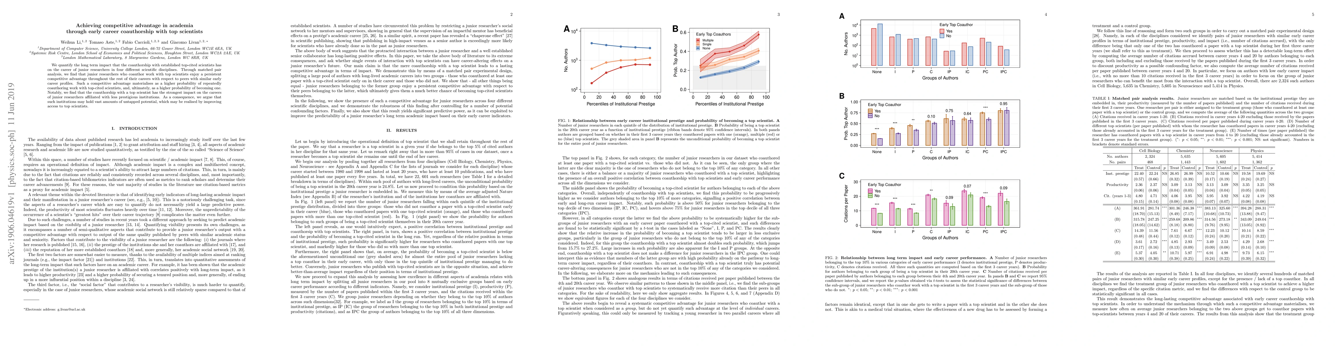 We quantify the long term impact that the coauthorship with established top-cited scientists has on the career of junior researchers in four different scientific disciplines. Through matched pair analysis, we find that junior researchers who coauthor work with top scientists enjoy a persistent competitive advantage throughout the rest of their careers with respect to peers with similar early career profiles. Such a competitive advantage materialises as a higher probability of repeatedly coauthoring work with top-cited scientists, and, ultimately, as a higher probability of becoming one. Notably, we find that the coauthorship with a top scientist has the strongest impact on the careers of junior researchers affiliated with less prestigious institutions. As a consequence, we argue that such institutions may hold vast amounts of untapped potential, which may be realised by improving access to top scientists.