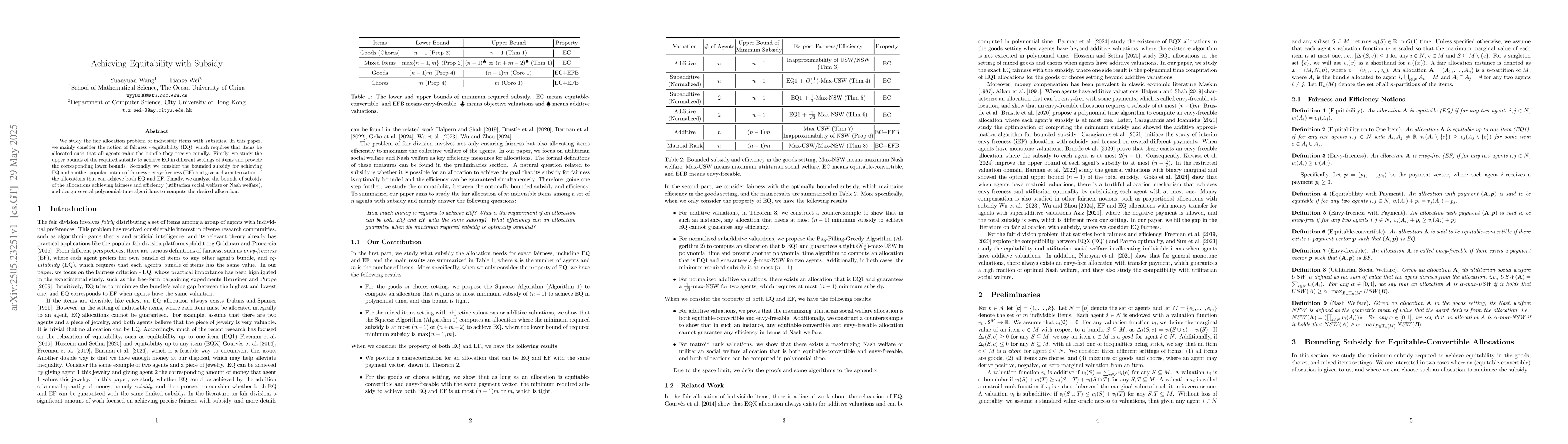 This research contributes to the understanding of fair allocation problems by providing bounds and algorithms for achieving equitability with subsidies, which is crucial for designing practical fair division mechanisms in real-world applications.
