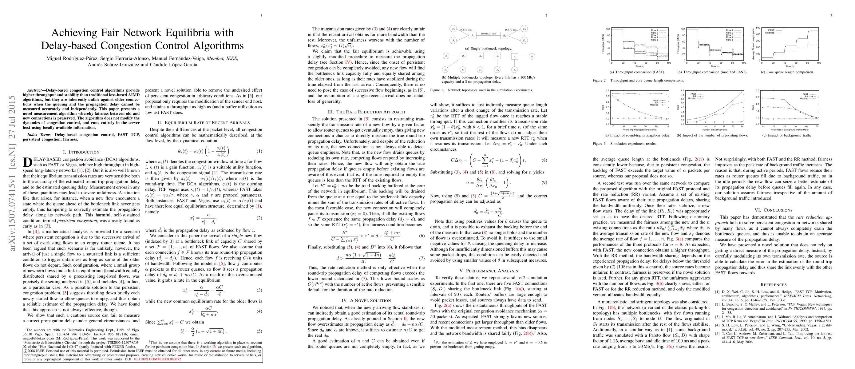 This paper introduces a new measurement algorithm to achieve fair network equilibria using delay-based congestion control, preserving fairness between old and new connections without altering congestion control dynamics, relying solely on locally available information at the server.