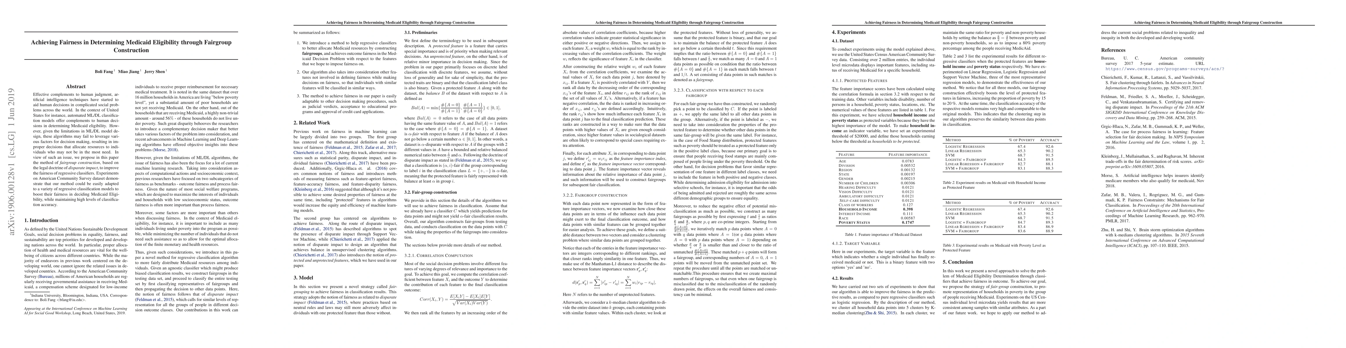 Effective complements to human judgment, artificial intelligence techniques have started to aid human decisions in complicated social problems across the world. In the context of United States for instance, automated ML/DL classification models offer complements to human decisions in determining Medicaid eligibility. However, given the limitations in ML/DL model design, these algorithms may fail to leverage various factors for decision making, resulting in improper decisions that allocate resources to individuals who may not be in the most need. In view of such an issue, we propose in this paper the method of \textit{fairgroup construction}, based on the legal doctrine of \textit{disparate impact}, to improve the fairness of regressive classifiers. Experiments on American Community Survey dataset demonstrate that our method could be easily adapted to a variety of regressive classification models to boost their fairness in deciding Medicaid Eligibility, while maintaining high levels of classification accuracy.