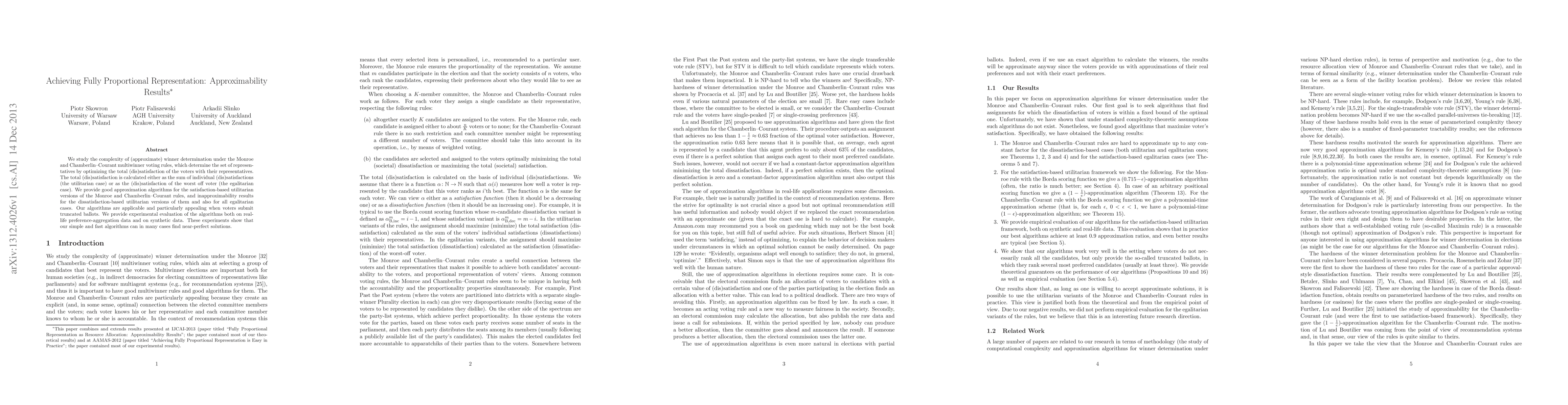 This research presents approximation algorithms for determining winners under Monroe and Chamberlin-Courant voting rules, optimizing voter satisfaction. It also provides inapproximability results for certain dissatisfaction-based and egalitarian cases. Experimental evaluation on real and synthetic data demonstrates the effectiveness of the proposed algorithms in finding near-optimal solutions.