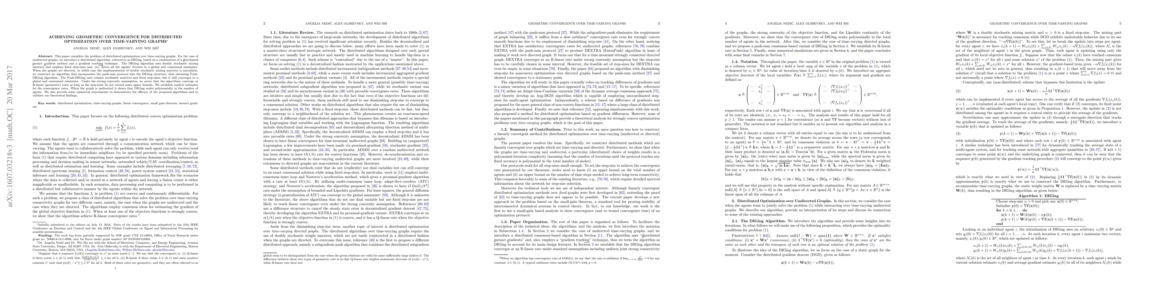 This paper proposes DIGing and Push-DIGing algorithms for distributed optimization over time-varying graphs, achieving geometric convergence rates under strong convexity. DIGing works for undirected graphs using doubly stochastic matrices, while Push-DIGing adapts for directed graphs using the push-sum protocol, both demonstrating polynomial scalability and convergence rates.