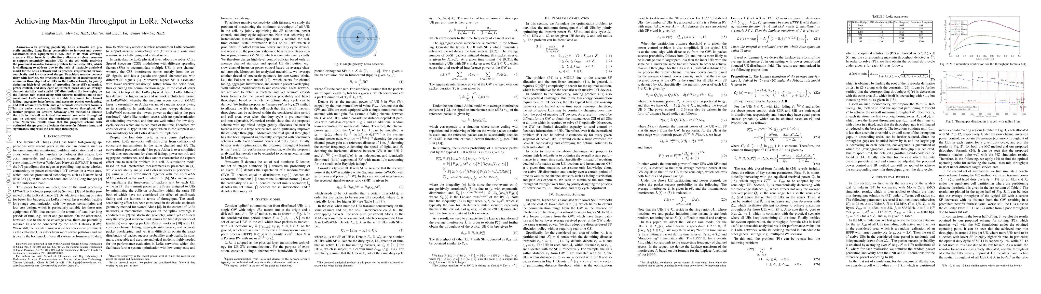 A research paper proposes a method to optimize LoRa networks for massive connectivity while addressing fairness issues, achieving max-min throughput through design of spreading factor allocation, power control, and duty cycle adjustment.