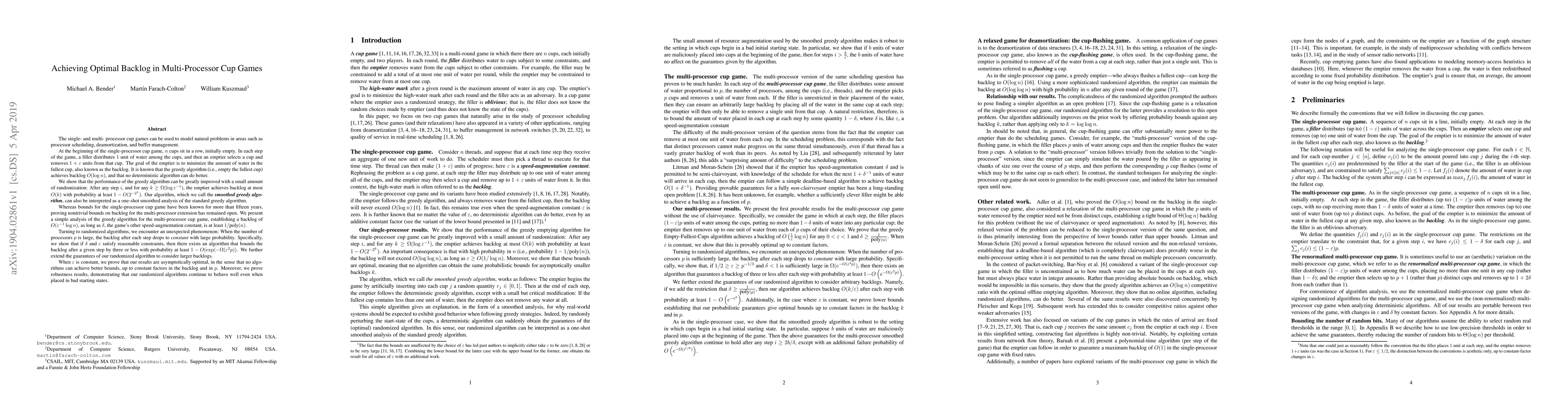 The single- and multi- processor cup games can be used to model natural problems in areas such as processor scheduling, deamortization, and buffer management. At the beginning of the single-processor cup game, $n$ cups are initially empty. In each step of the game, a filler distributes $1$ unit of water among the cups, and then an emptier selects a cup and removes $1 + \epsilon$ units from that cup. The goal of the emptier is to minimize the amount of water in the fullest cup, also known as the backlog. It is known that the greedy algorithm (i.e., empty the fullest cup) achieves backlog $O(\log n)$, and that no deterministic algorithm can do better. We show that the performance of the greedy algorithm can be greatly improved with a small amount of randomization: After any step $i$, and for any $k \ge \Omega(\log \epsilon^{-1})$, the emptier achieves backlog at most $O(k)$ with probability at least $1 -O(2^{-2^k})$. Whereas bounds for the single-processor cup game have been known for more than fifteen years, proving nontrivial bounds on backlog for the multi-processor extension has remained open. We present a simple analysis of the greedy algorithm for the multi-processor cup game, establishing a backlog of $O(\epsilon^{-1} \log n)$, as long as $\delta$, the game's other speed-augmentation constant, is at least $1/poly(n)$. Turning to randomized algorithms, we encounter an unexpected phenomenon: When the number of processors $p$ is large, the backlog after each step drops to \emph{constant} with large probability. Specifically, we show that if $\delta$ and $\epsilon$ satisfy reasonable constraints, then there exists an algorithm that bounds the backlog after a given step by three or less with probability at least $1 - O(\exp(-\Omega(\epsilon^2 p))$. We further extend the guarantees of our randomized algorithm to consider larger backlogs.