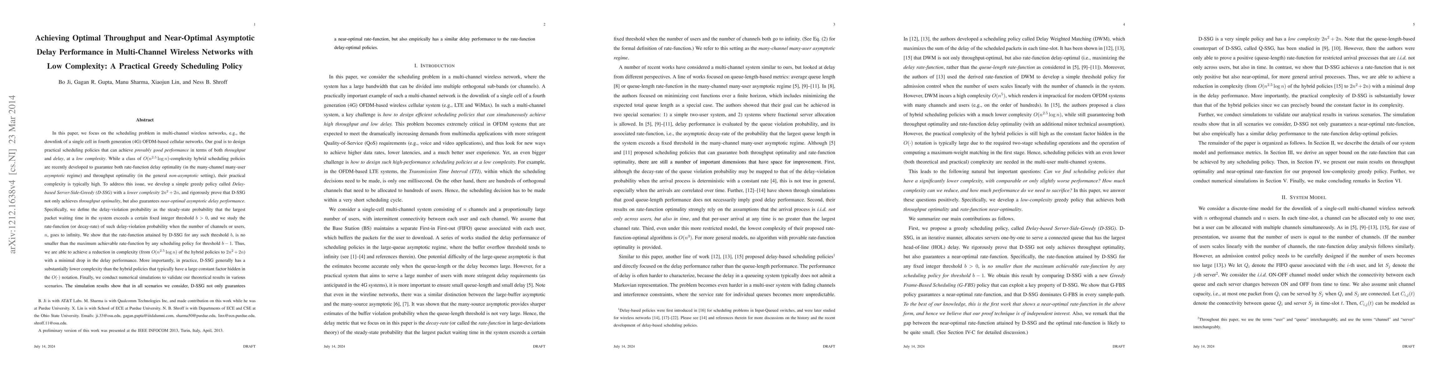 This paper proposes a simple greedy scheduling policy called Delay-based Server-Side-Greedy (D-SSG) to achieve optimal throughput and near-optimal delay performance in multi-channel wireless networks at significantly lower complexity compared to existing hybrid policies. The D-SSG policy maintains throughput optimality and guarantees near-optimal asymptotic delay, validated by both theoretical proofs and numerical simulations.