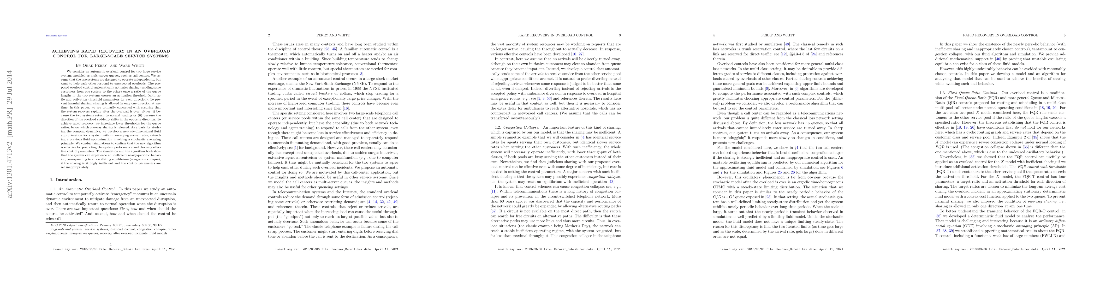 Researchers developed an automatic overload control system to help two large service systems respond to unexpected overloads by sharing customers between them. The system can achieve rapid recovery and prevent inefficient oscillating behavior if set up correctly.