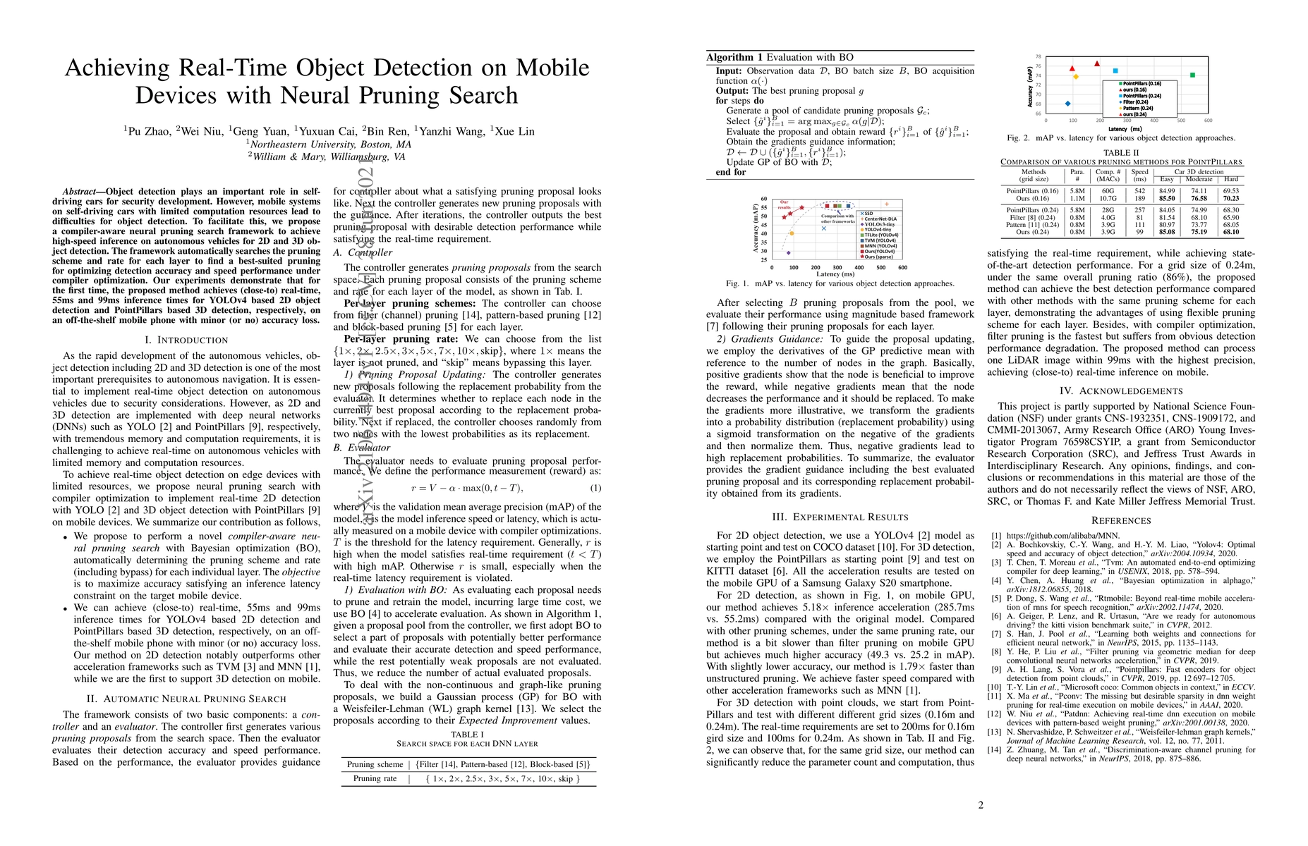 This paper proposes a compiler-aware neural pruning search framework to optimize real-time object detection on mobile devices for self-driving cars, achieving near real-time inference times with minimal accuracy loss. The method dynamically determines the best pruning scheme for each layer, resulting in 55ms and 99ms inference times for 2D and 3D detection, respectively.
