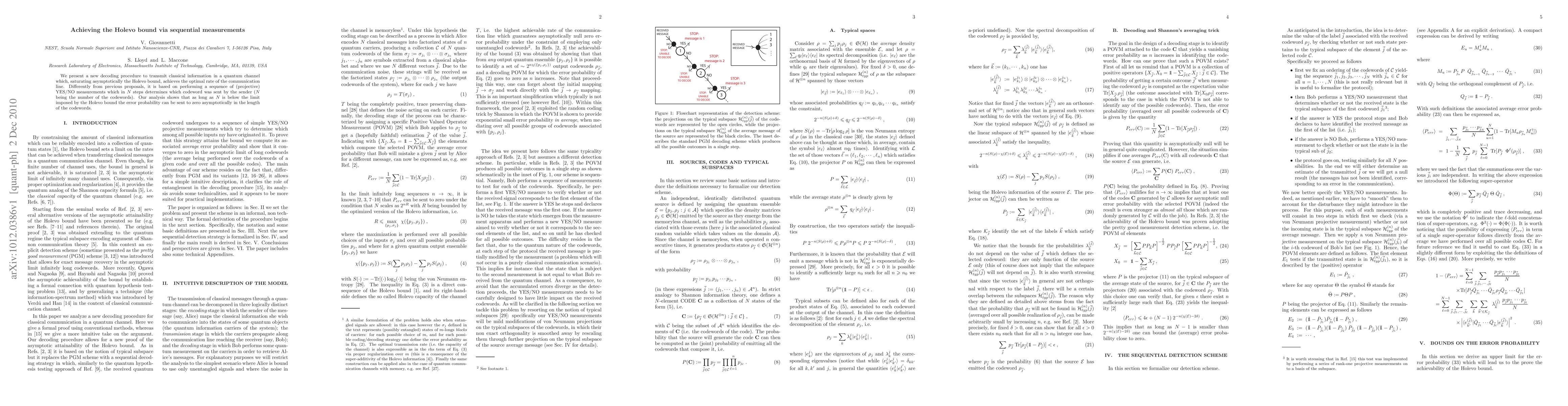 This paper introduces a new decoding method for quantum channels that achieves the optimal communication rate by sequentially performing projective YES/NO measurements. This approach can asymptotically reduce error probability to zero when the number of codewords is below the Holevo bound limit.