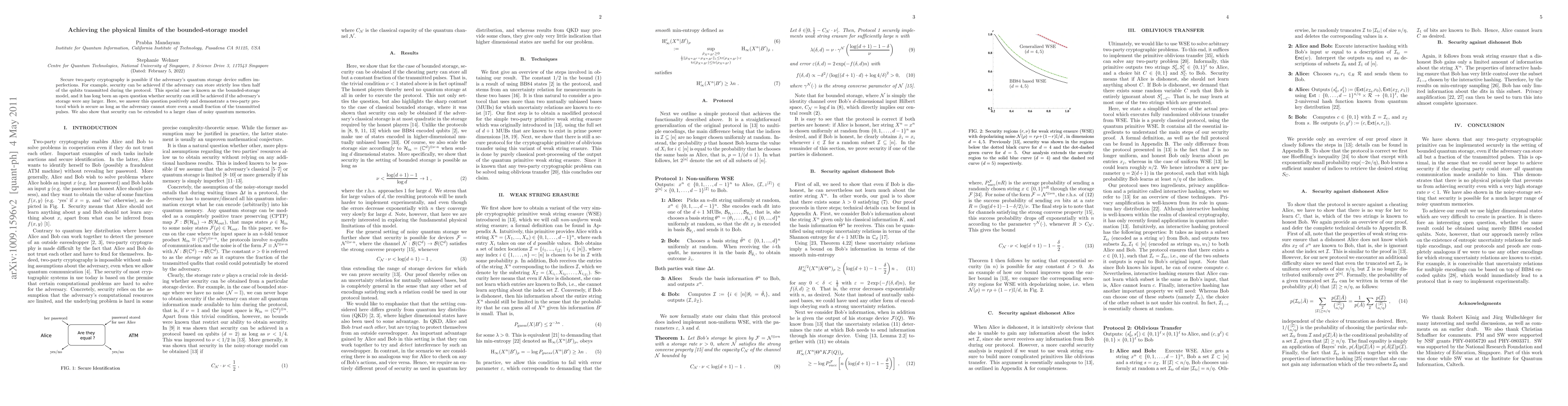 This paper demonstrates a secure two-party quantum cryptography protocol under the bounded-storage model, proving that security can be maintained even when the adversary's storage capacity is only slightly larger than previously allowed. It extends security to a broader range of noisy quantum memories.