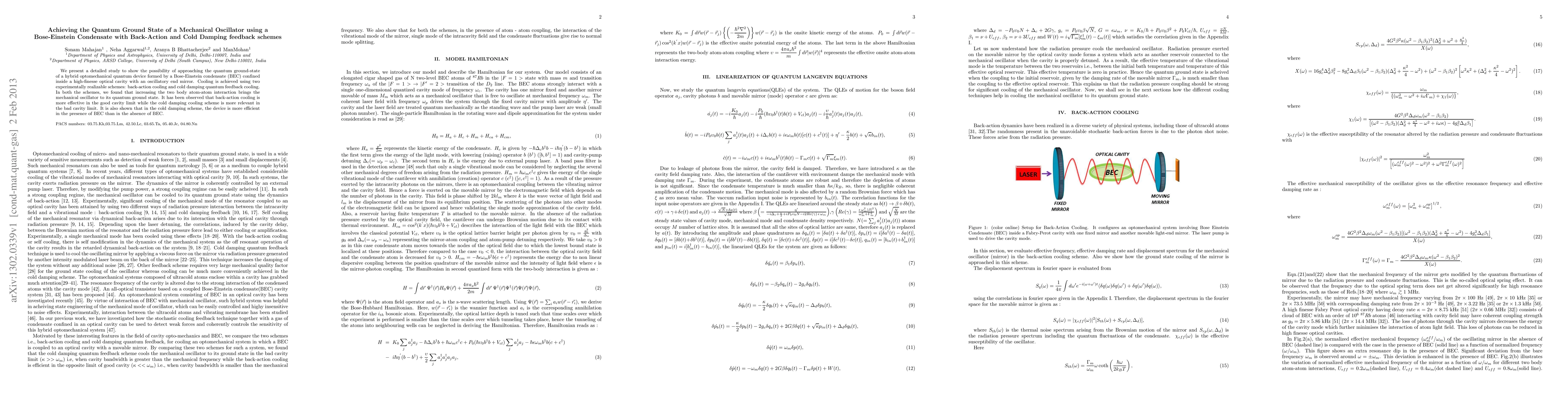 This paper investigates the cooling of a mechanical oscillator in a hybrid optomechanical device using a Bose-Einstein condensate, employing back-action and cold damping feedback schemes. It finds that back-action cooling is more effective in high-quality cavities, while cold damping is more efficient in lower-quality cavities, especially with the presence of a BEC.