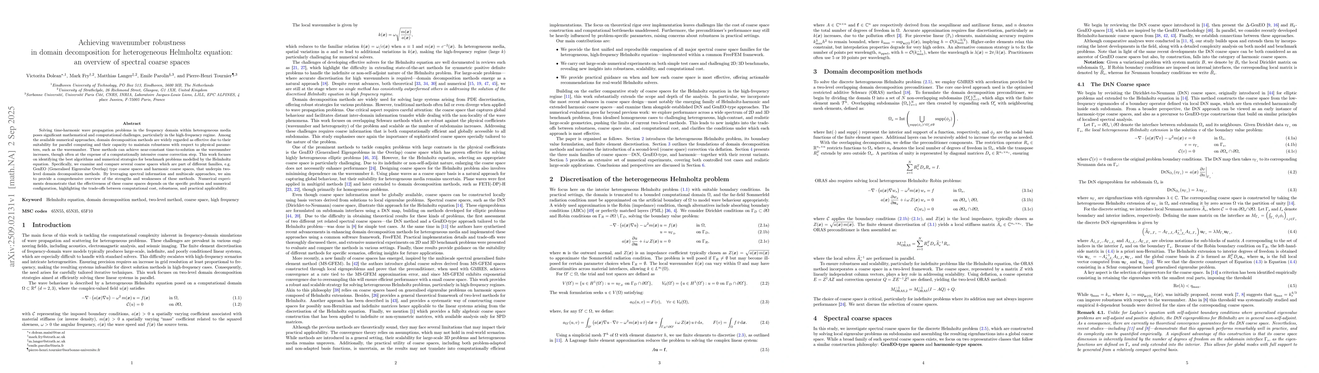 Solving time-harmonic wave propagation problems in the frequency domain within heterogeneous media poses significant mathematical and computational challenges, particularly in the high-frequency regime. Among the available numerical approaches, domain decomposition methods are widely regarded as effective due to their suitability for parallel computing and their capacity to maintain robustness with respect to physical parameters, such as the wavenumber. These methods can achieve near-constant time-to-solution as the wavenumber increases, though often at the expense of a computationally intensive coarse correction step. This work focuses on identifying the best algorithms and numerical strategies for benchmark problems modelled by the Helmholtz equation. Specifically, we examine and compare several coarse spaces which are part of different families, e.g. GenEO (Generalised Eigenvalue Overlap) type coarse spaces and harmonic coarse spaces, that underpin two-level domain decomposition methods. By leveraging spectral information and multiscale approaches, we aim to provide a comprehensive overview of the strengths and weaknesses of these methods. Numerical experiments demonstrate that the effectiveness of these coarse spaces depends on the specific problem and numerical configuration, highlighting the trade-offs between computational cost, robustness, and practical applicability.