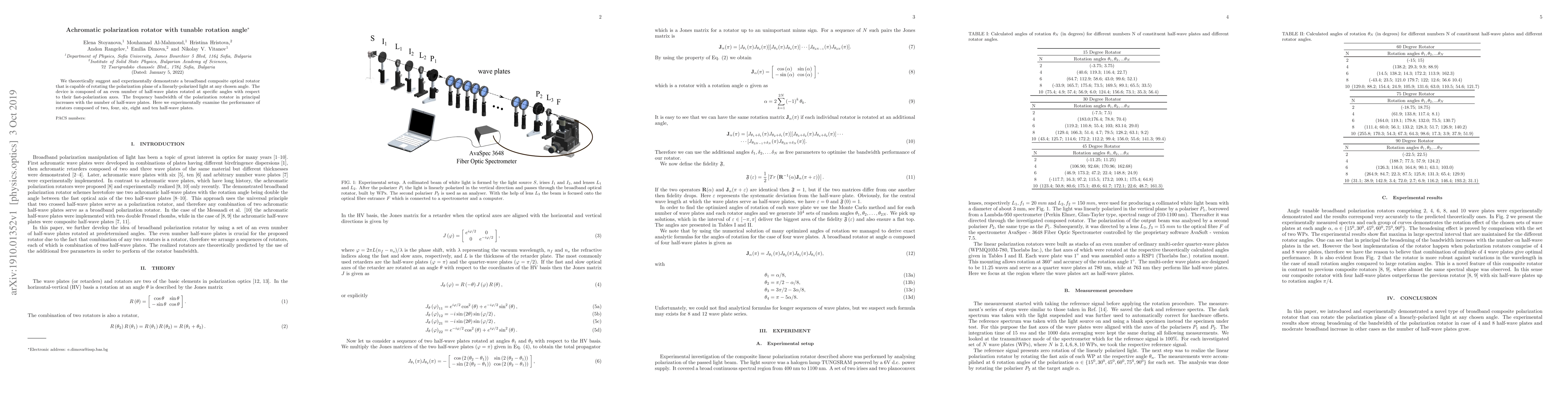 We theoretically suggest and experimentally demonstrate a broadband composite optical rotator that is capable of rotating the polarization plane of a linearly-polarized light at any chosen angle. The device is composed of an even number of half-wave plates rotated at specific angles with respect to their fast-polarization axes. The frequency bandwidth of the polarization rotator in principal increases with the number of half-wave plates. Here we experimentally examine the performance of rotators composed of two, four, six, eight and ten half-wave plates.