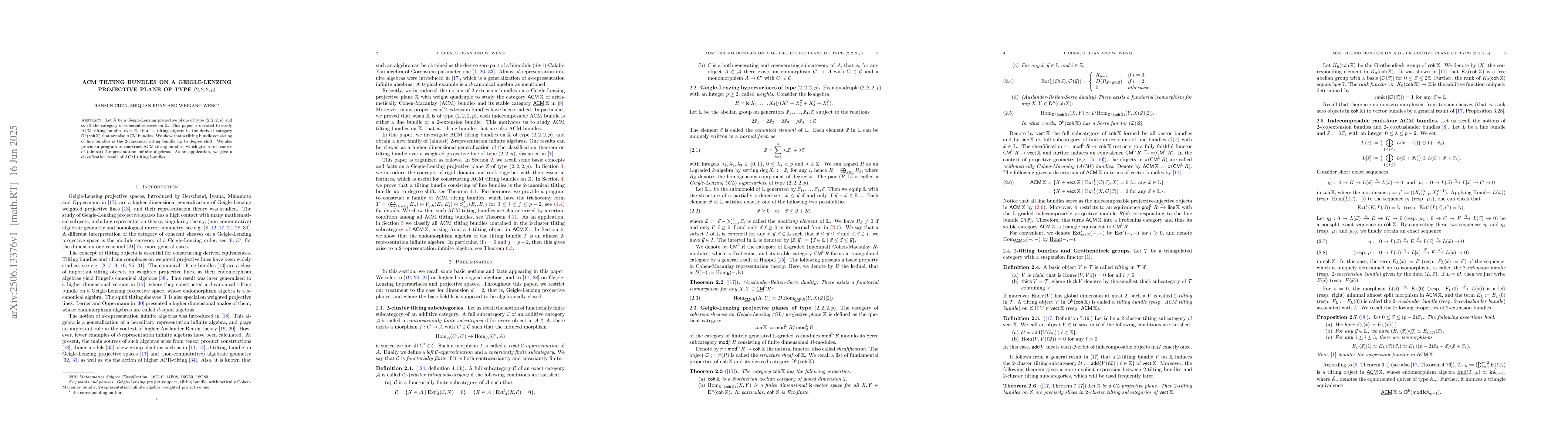 Let $\mathbb{X}$ be a Geigle-Lenzing projective plane of type $(2,2,2,p)$ and $\mathsf{coh} \mathbb{X}$ the category of coherent sheaves on $\mathbb{X}$. This paper is devoted to study ACM tilting bundles over $\mathbb{X}$, that is, tilting objects in the derived category $\mathsf{D}^{\rm b}(\mathsf{coh} \, \mathbb{X})$ that are also ACM bundles. We show that a tilting bundle consisting of line bundles is the $2$-canonical tilting bundle up to degree shift. We also provide a program to construct ACM tilting bundles, which give a rich source of (almost) $2$-representation infinite algebras. As an application, we give a classification result of ACM tilting bundles.