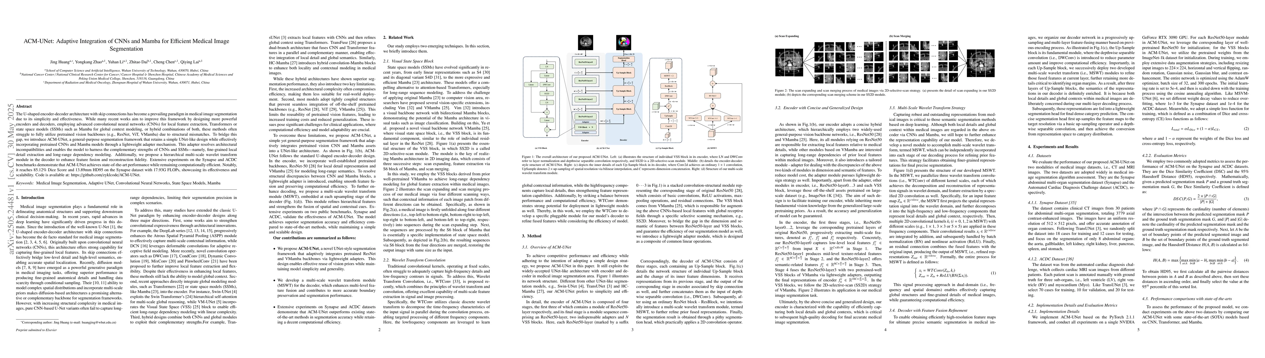 This research is significant as it proposes a computationally efficient and high-performing segmentation framework, ACM-UNet, which effectively combines the strengths of CNNs and Mamba models, making it suitable for real-time or resource-constrained clinical applications.