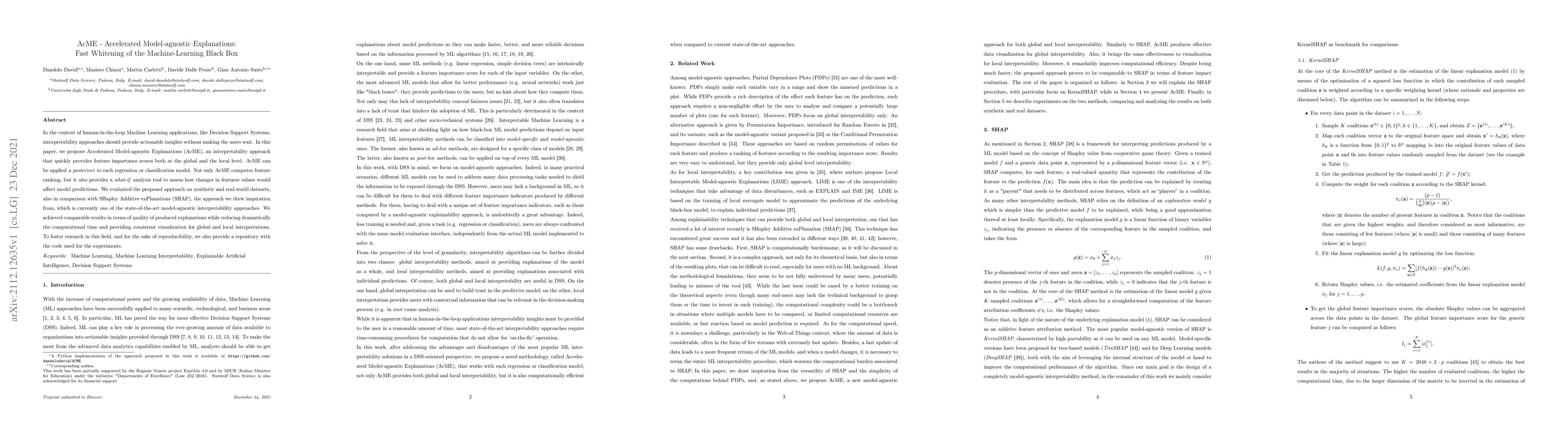 A new interpretability approach called AcME accelerates model-agnostic explanations, providing fast feature importance scores and what-if analysis tools for Machine Learning applications.