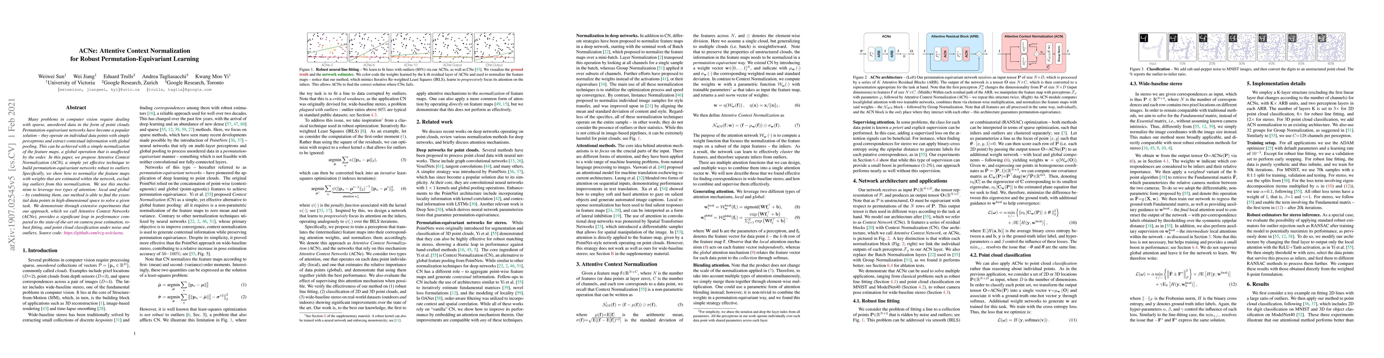 The paper proposes Attentive Context Normalization (ACN) to build robust permutation-equivariant networks for sparse, unordered data like point clouds, excluding outliers through learned weights. Attentive Context Networks (ACNe) leverage local and global attention for superior performance in tasks like camera pose estimation and point cloud classification under noise.