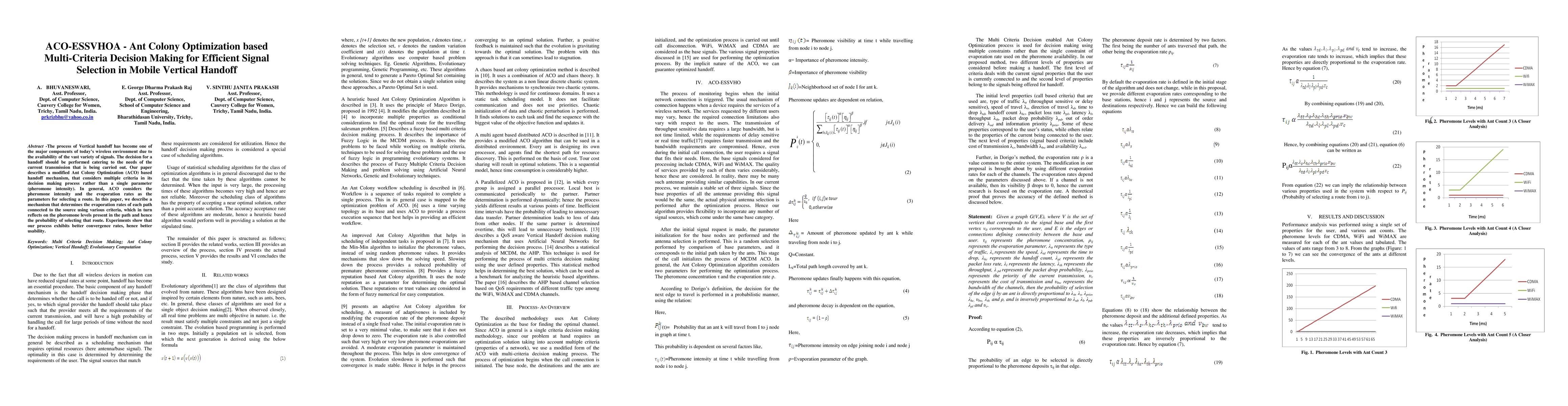 The process of Vertical handoff has become one of the major components of today's wireless environment due to the availability of the vast variety of signals. The decision for a handoff should be performed catering to the needs of the current transmission that is being carried out. Our paper describes a modified Ant Colony Optimization based handoff mechanism, that considers multiple criteria in its decision making process rather than a single parameter (pheromone intensity). In general, ACO considers the pheromone intensity and the evaporation rates as the parameters for selecting a route. In this paper, we describe a mechanism that determines the evaporation rates of each path connected to the source using various criteria, which in turn reflects on the pheromone levels present in the path and hence the probability of selecting that route. Experiments show that our process exhibits better convergence rates, hence better usability.