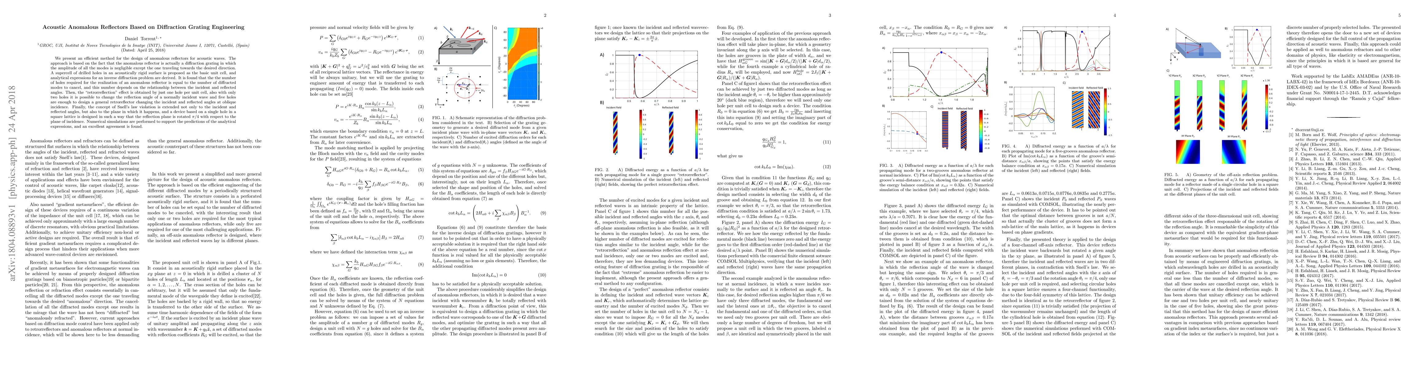 This paper details a method for designing acoustic anomalous reflectors based on diffraction grating engineering. It proposes a supercell of drilled holes in an acoustically rigid surface to achieve retrorreflection, with numerical simulations validating the analytical predictions.