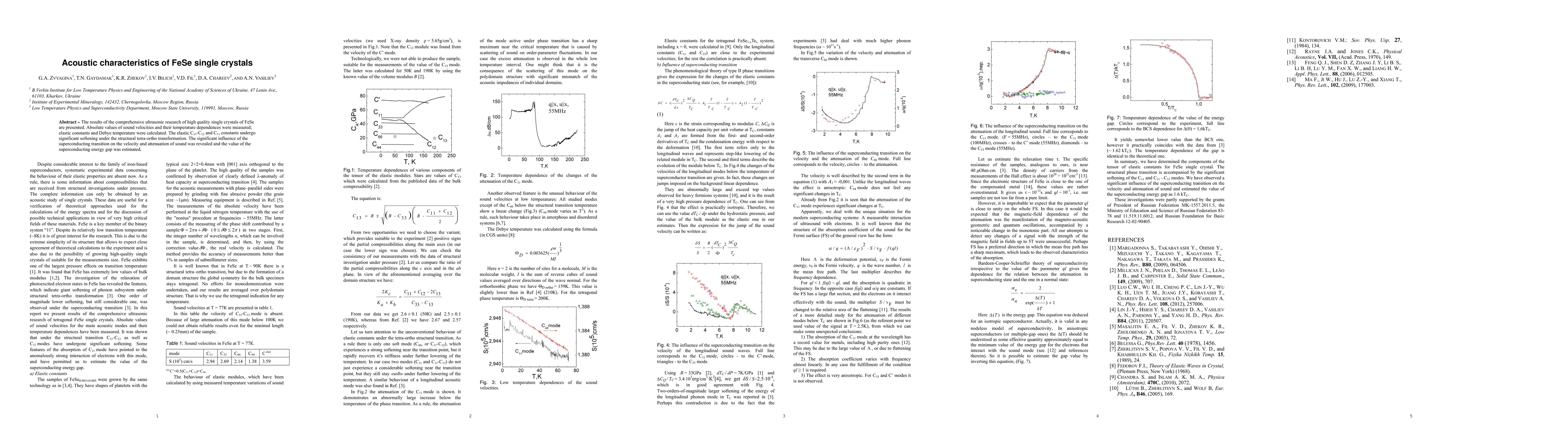 Summary: This study investigates the ultrasonic properties of FeSe single crystals, revealing significant softening in elastic constants during structural transformations and a notable impact of superconductivity on sound velocity and attenuation, leading to an estimation of the superconducting energy gap.