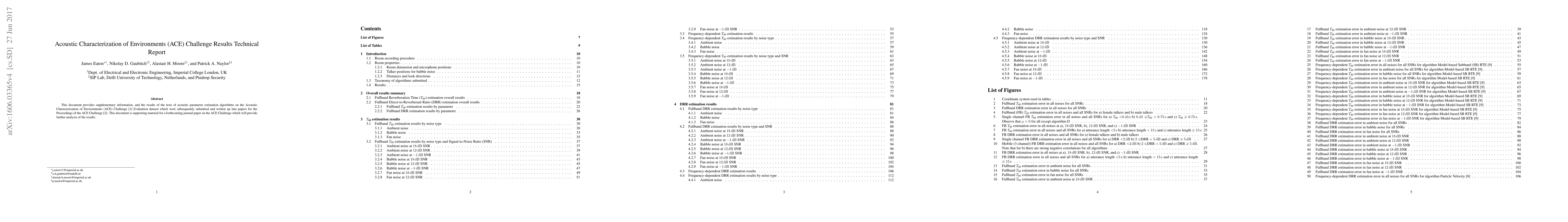 This report summarizes the outcomes of acoustic parameter estimation algorithms tested on the ACE Challenge Evaluation dataset, with results submitted as papers for the Proceedings of the ACE Challenge. It serves as supplementary material for an upcoming journal paper offering deeper analysis of these results.