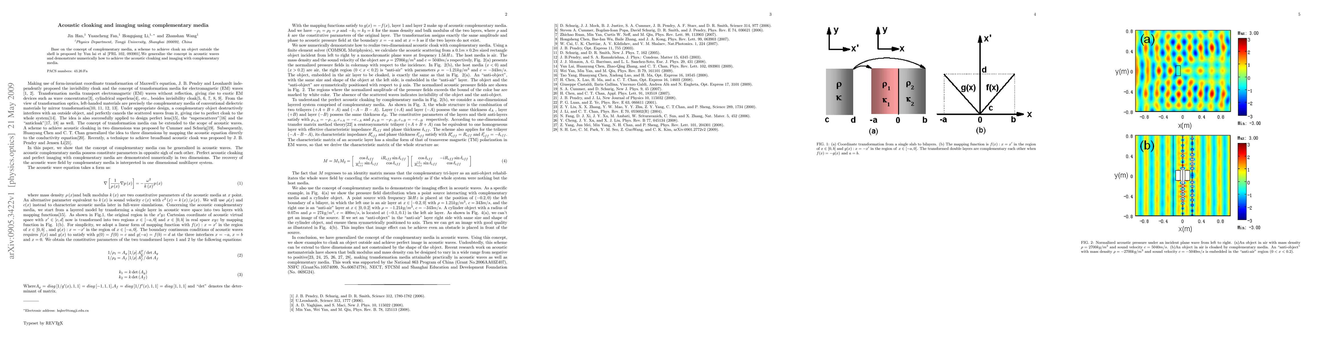 This paper proposes a method to achieve acoustic cloaking based on the concept of complementary media, demonstrating numerically how to effectively hide objects by manipulating acoustic waves. The authors generalize the concept for practical acoustic applications.