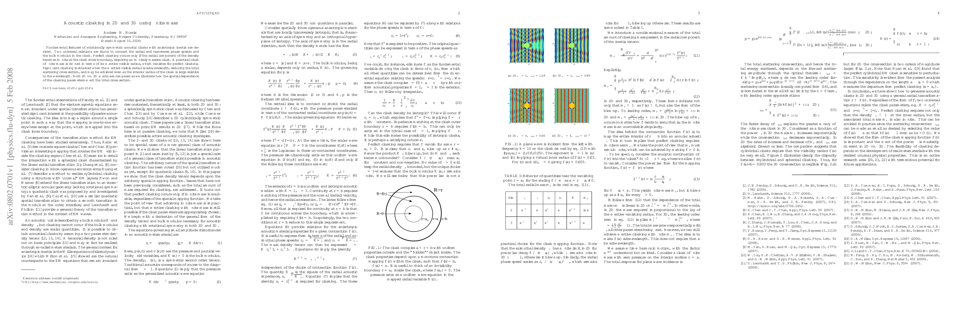 This paper explores the derivation of rotationally symmetric acoustic cloaks with anisotropic inertia, revealing two universal relations linking phase speeds and bulk modulus. It concludes that perfect cloaking requires an infinitely massive cloak, but significant cloaking can still be achieved with a finite mass cloak, especially when its effective visible radius is subwavelength, thus reducing scattering. Both 2D and 3D cloaking effects are compared.