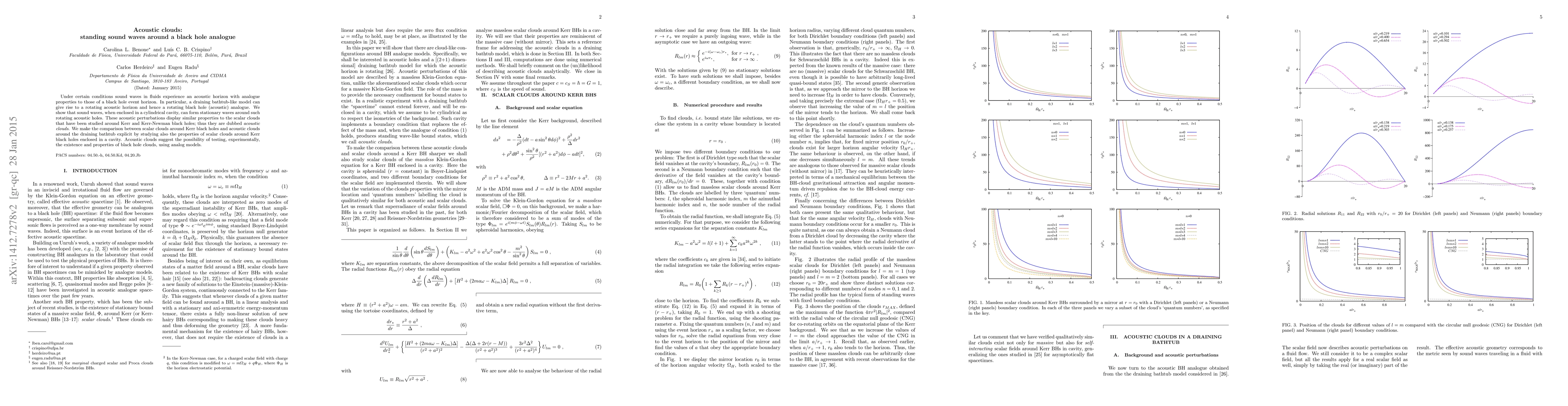 This paper investigates the formation of stationary sound waves, termed "acoustic clouds," around a rotating black hole analogue created in a draining bathtub. It compares these acoustic phenomena to scalar clouds around Kerr black holes, suggesting experimental analog models can test black hole cloud properties.