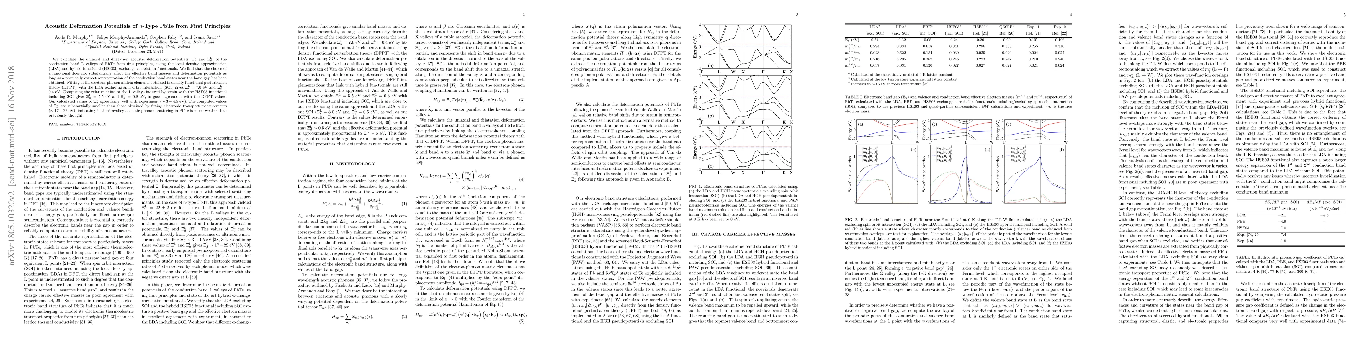 Researchers calculated acoustic deformation potentials of n-type PbTe using first principles methods, finding that their values agree with experimental results for uniaxial deformation but are significantly lower than previous estimates for dilatation.
