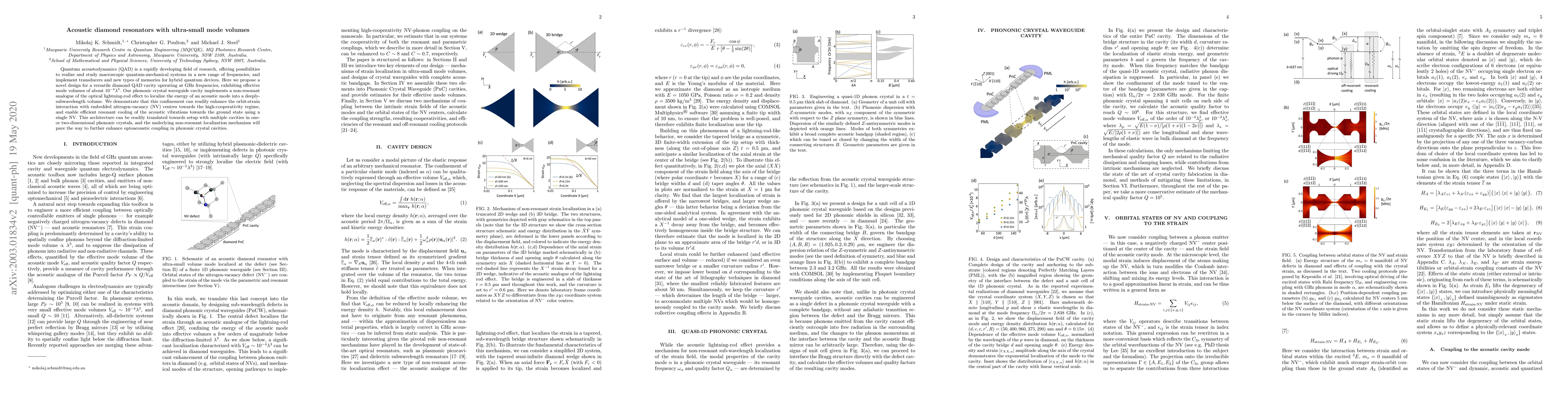 Researchers designed a diamond acoustic resonator with tiny mode volumes, enabling efficient cooling of vibrations using nitrogen-vacancy centers, and paving the way for enhanced opto-acoustic coupling in phononic crystal cavities.