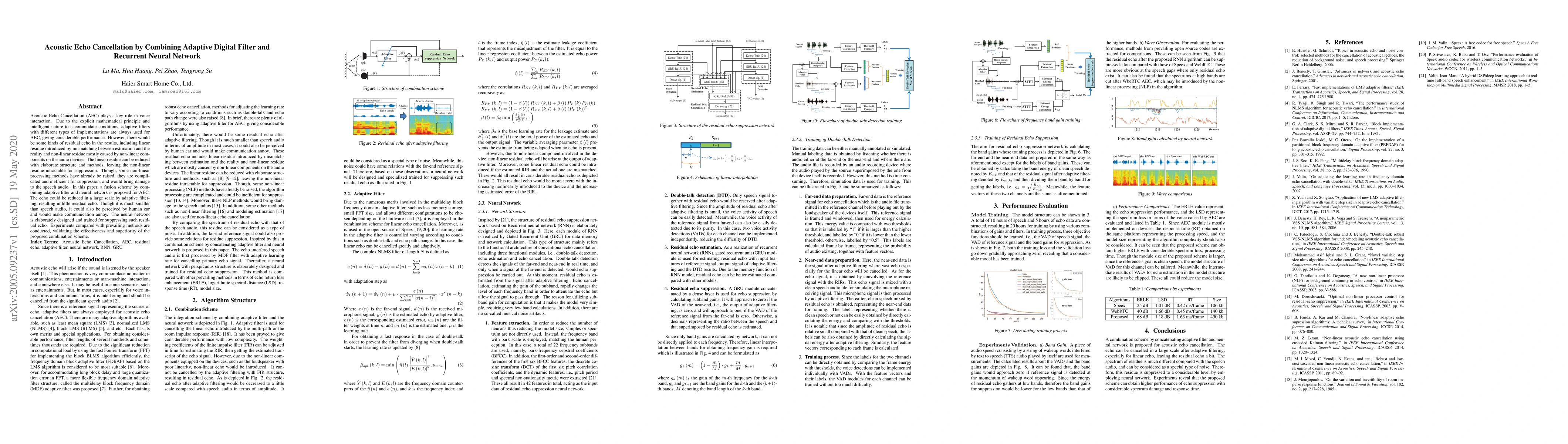 This paper proposes an Acoustic Echo Cancellation (AEC) method combining adaptive digital filters and a Recurrent Neural Network (RNN) to effectively reduce residual echoes, addressing both linear and non-linear echo components. Experimental results show the proposed fusion scheme outperforms existing methods in echo suppression.