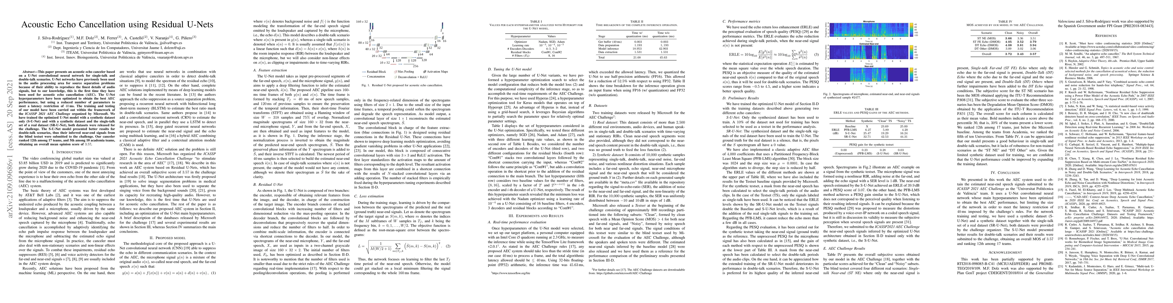 Researchers developed an acoustic echo cancellation system using U-Net convolutional neural networks for single-talk and double-talk scenarios, achieving a 3.57 mean opinion score in the ICASSP 2021 AEC Challenge.