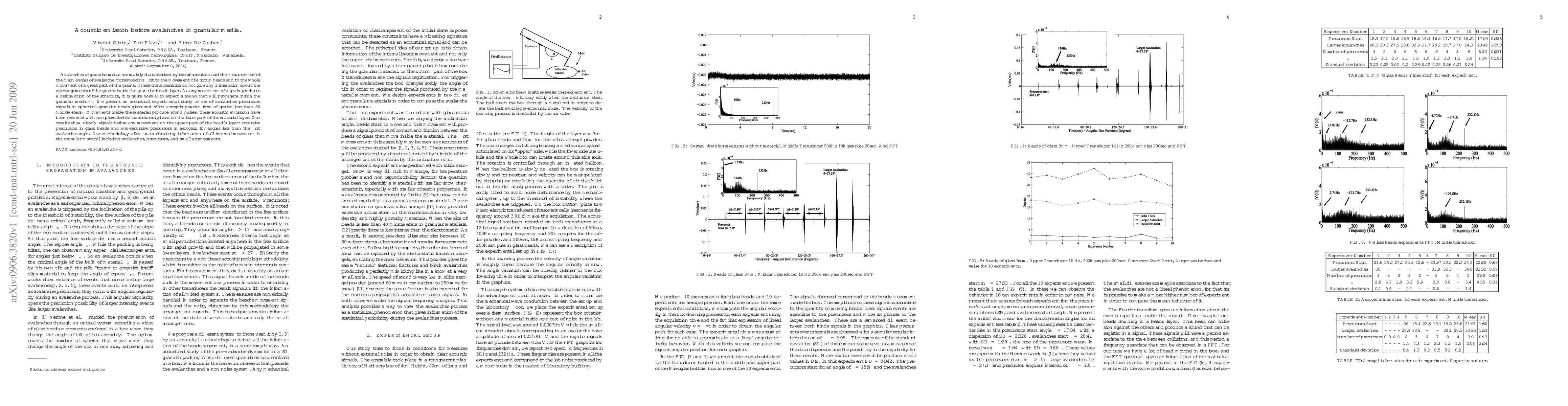 Avalanches of granular media are mainly characterized by the observation and the measurement of the main angles of avalanche corresponding first to the movement of a group beads and to the whole movement of a great part of the grains. These characteristics do not give any information about the rearrangements of the grains inside the granular beads layer. As any movement of a grain produces a deformation of the structure, it is quite normal to expect a sound that will propagate inside the granular medium. We present an acoustical experimental study of the of avalanches precursors signals in spherical granular beads glass and silica aerogels powder (size of grains less than 80 micrometers). Movements inside the material produce sound pulses, these acoustic emissions have been recorded with two piezoelectric transducers placed on the lower part of the material layer. Our results show clearly signals before any movement on the upper part of the bead's layer: recursive precursors in glass beads and non-recursive precursors in aerogels, for angles less than the first avalanche angle. Our methodology allow us to obtaining information of all internal movement in the granular material including avalanches, precursors, and small arrangements.