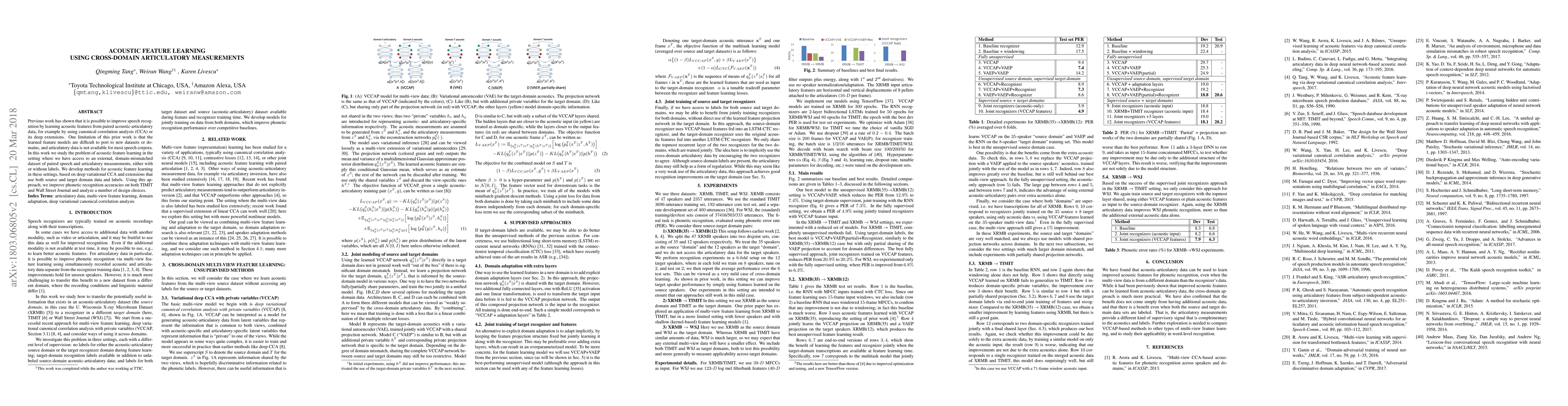 This paper proposes methods for acoustic feature learning using cross-domain articulatory measurements, addressing the challenge of transferring learned models to new datasets. It employs deep variational canonical correlation analysis and leverages both labeled and unlabeled domain-mismatched data to enhance phonetic recognition accuracy on TIMIT and Wall Street Journal corpora.
