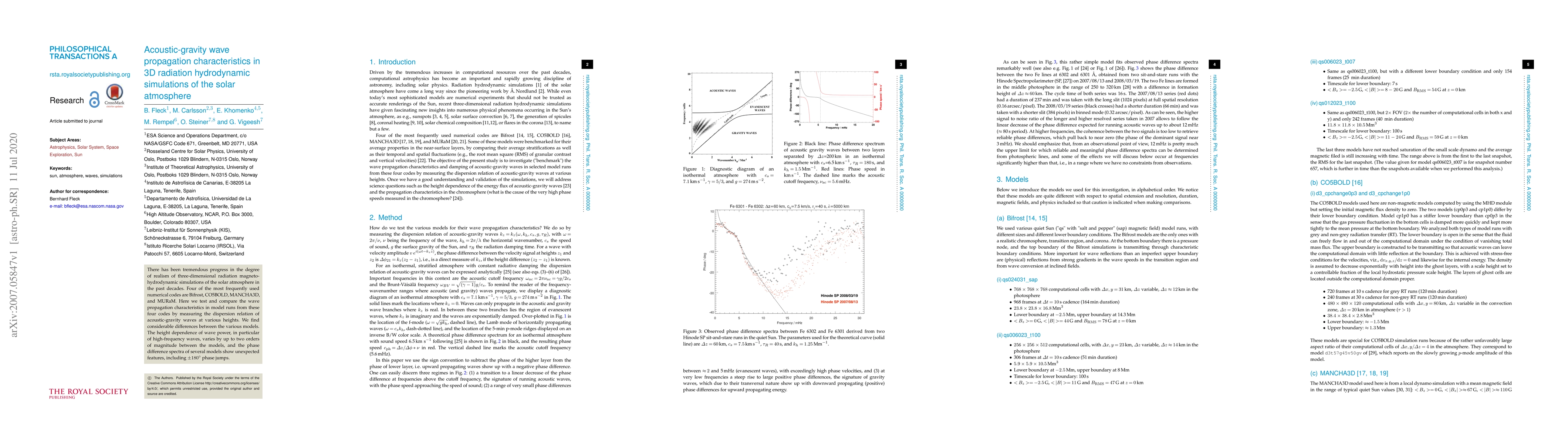 This study compares the acoustic-gravity wave propagation characteristics in four advanced 3D radiation magneto-hydrodynamic simulations of the solar atmosphere, revealing significant differences in wave power and unexpected phase jumps. The findings highlight the need for further model refinement to achieve greater consistency.
