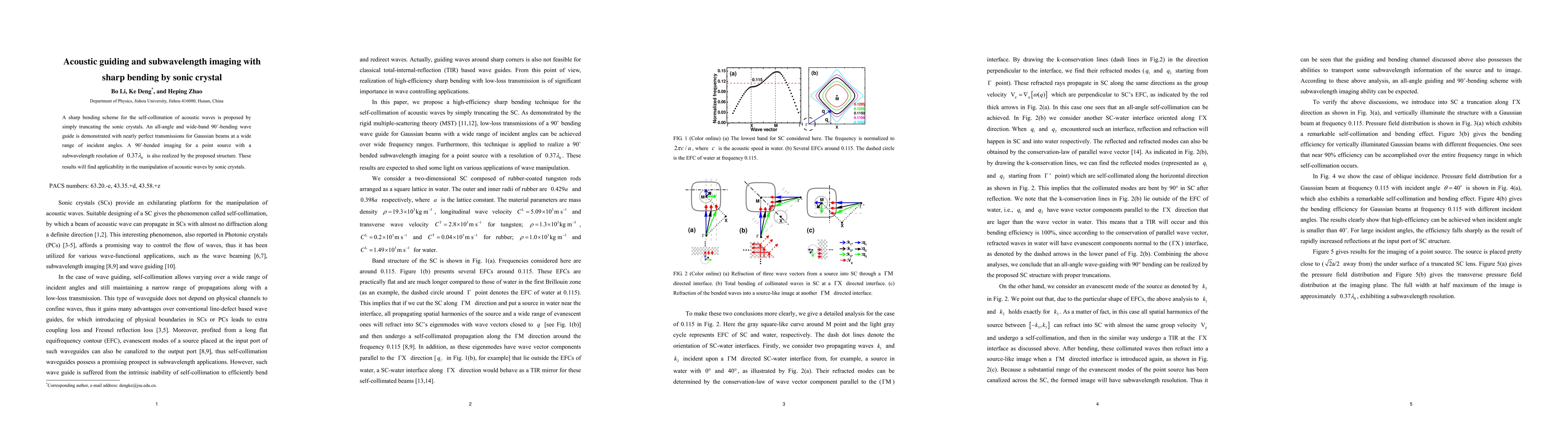 Researchers propose a method to create sharp bends in acoustic waves using sonic crystals, achieving subwavelength resolution and wide-band transmission for imaging applications.