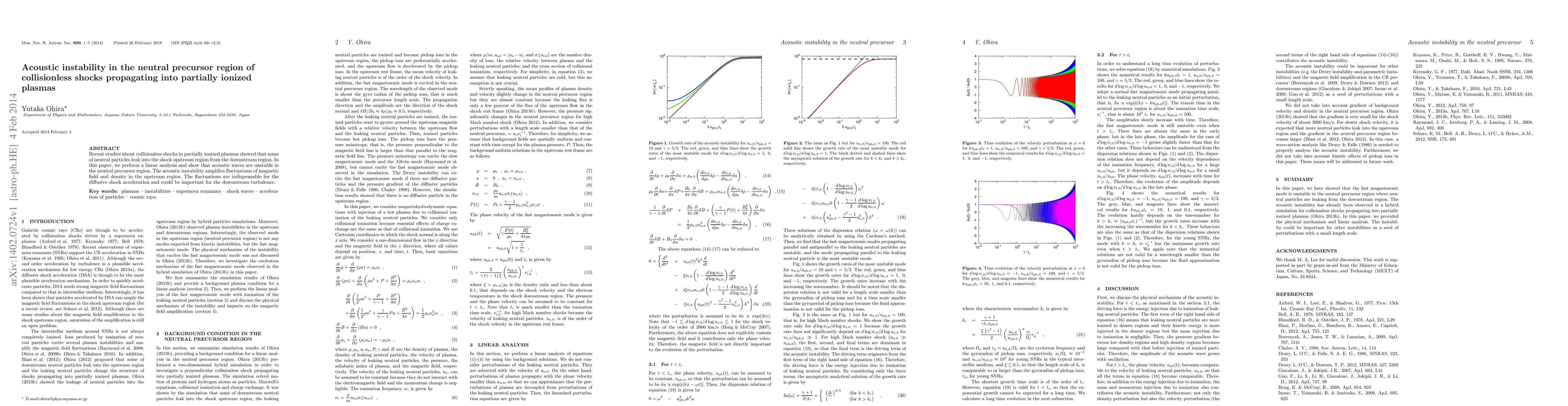 This paper investigates the acoustic instability in the neutral precursor region of collisionless shocks in partially ionized plasmas, demonstrating that acoustic waves are unstable and amplify upstream magnetic field and density fluctuations, crucial for diffusive shock acceleration and downstream turbulence.