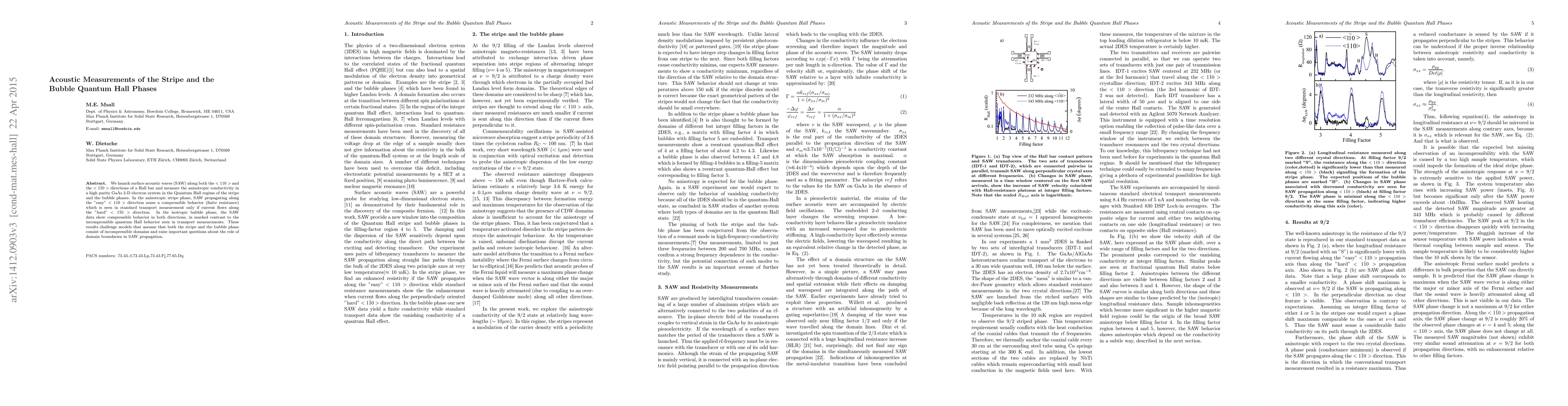This study uses surface acoustic waves to measure anisotropic conductivity in a GaAs 2-D electron system during the stripe and bubble Quantum Hall phases, revealing compressible behavior in the anisotropic stripe phase and contrasting with the incompressible behavior seen in transport measurements. The findings challenge existing models and highlight the significance of domain boundaries in acoustic wave propagation.