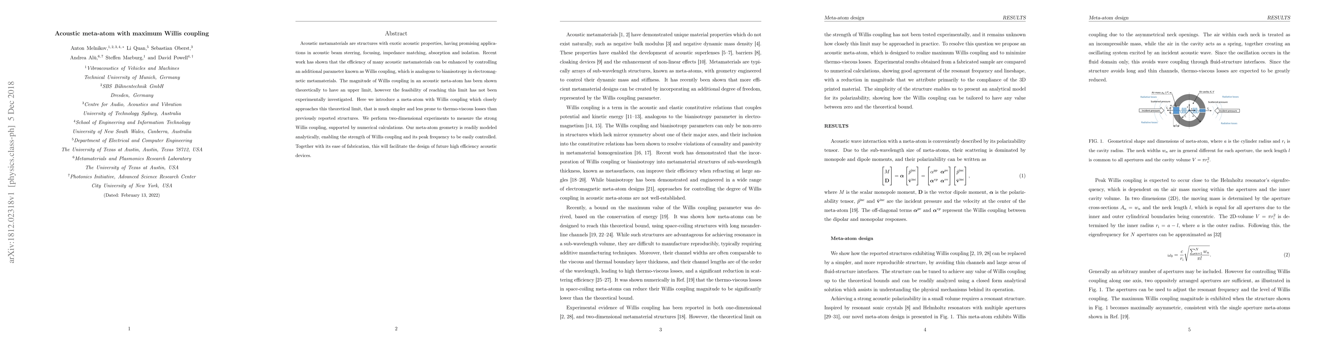 Acoustic metamaterials are structures with exotic acoustic properties, having promising applications in acoustic beam steering, focusing, impedance matching, absorption and isolation. Recent work has shown that the efficiency of many acoustic metamaterials can be enhanced by controlling an additional parameter known as Willis coupling, which is analogous to bianisotropy in electromagnetic metamaterials. The magnitude of Willis coupling in an acoustic meta-atom has been shown theoretically to have an upper limit, however the feasibility of reaching this limit has not been experimentally investigated. Here we introduce a meta-atom with Willis coupling which closely approaches this theoretical limit, that is much simpler and less prone to thermo-viscous losses than previously reported structures. We perform two-dimensional experiments to measure the strong Willis coupling, supported by numerical calculations. Our meta-atom geometry is readily modeled analytically, enabling the strength of Willis coupling and its peak frequency to be easily controlled. Together with its ease of fabrication, this will facilitate the design of future high efficiency acoustic devices.