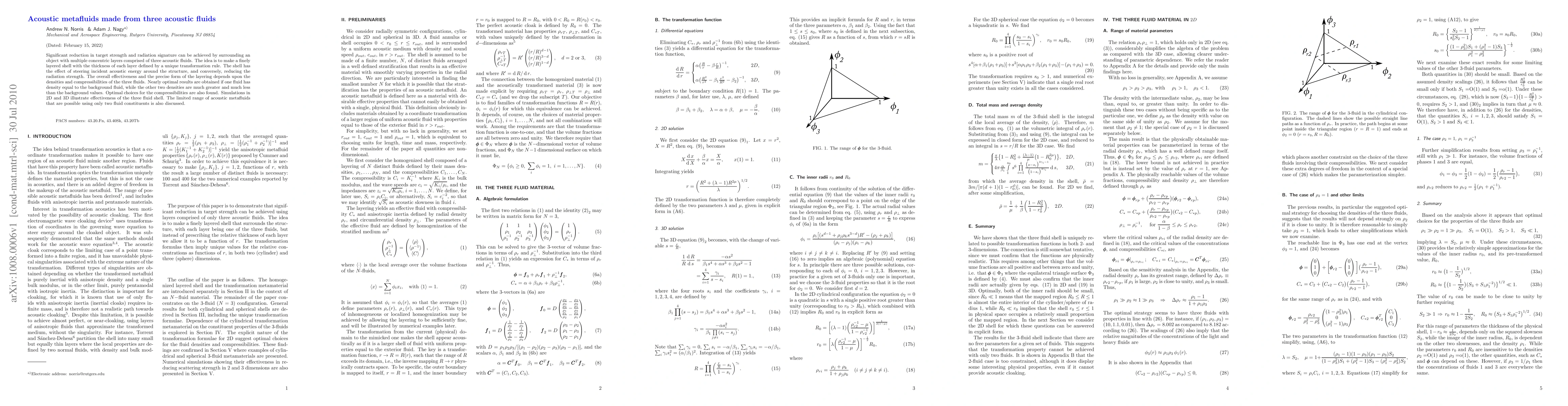 Researchers created an acoustic metafluid made from three layers of different fluids to reduce target strength and radiation signature in objects. The effectiveness depends on the densities and compressibilities of the three fluids, with optimal choices found for unique layering patterns.