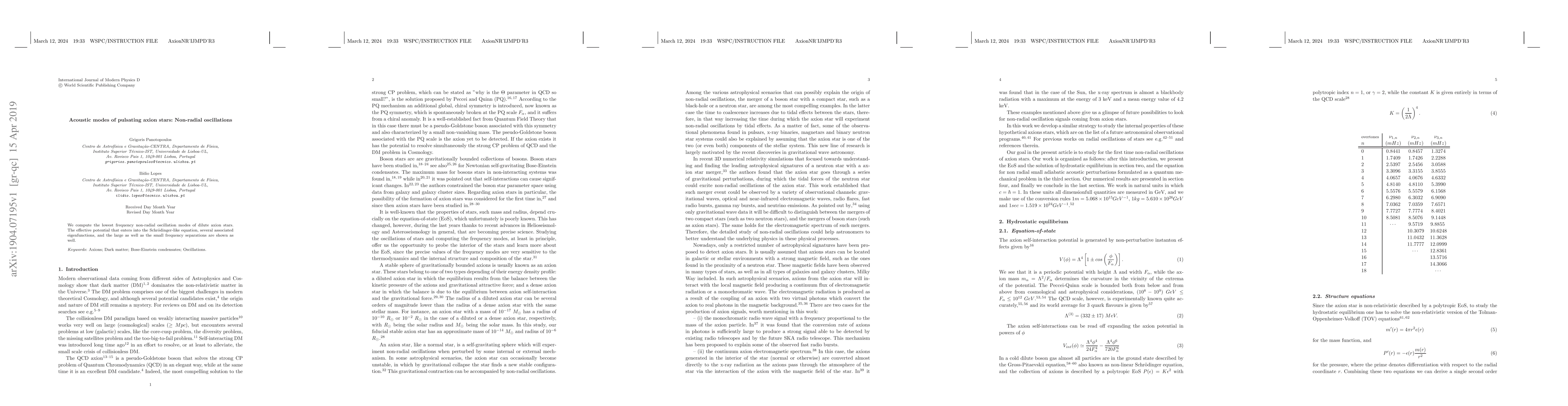Researchers computed the lowest frequency non-radial oscillation modes of dilute axion stars, revealing several eigenfunctions and large/small frequency separations.
