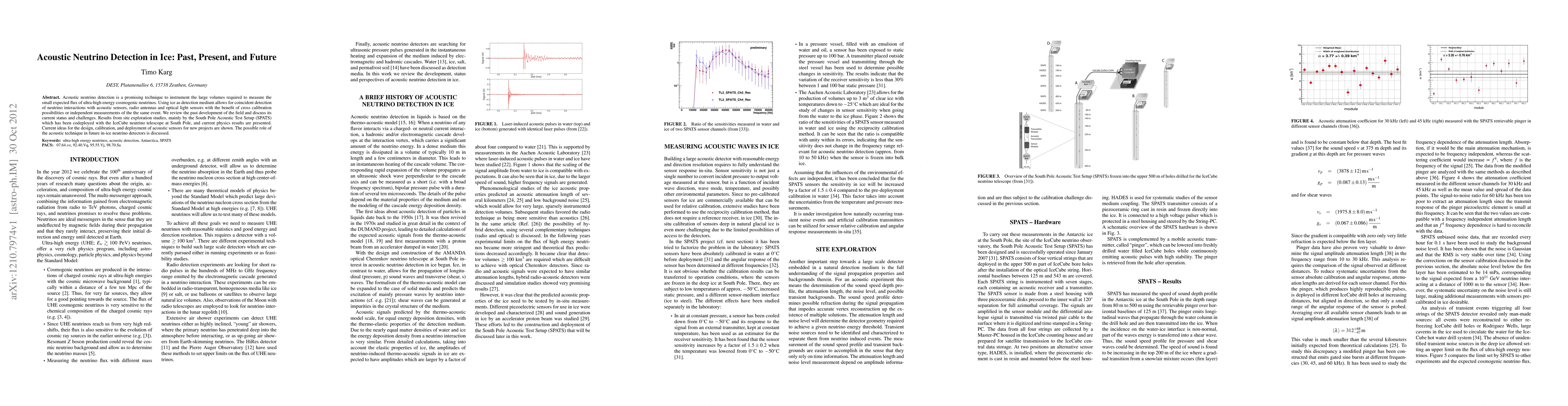 This paper reviews the development of acoustic neutrino detection in ice, highlighting past efforts, current status, and challenges. It discusses the South Pole Acoustic Test Setup's contributions and explores future prospects for in-ice neutrino detectors, emphasizing the potential of acoustic sensors.
