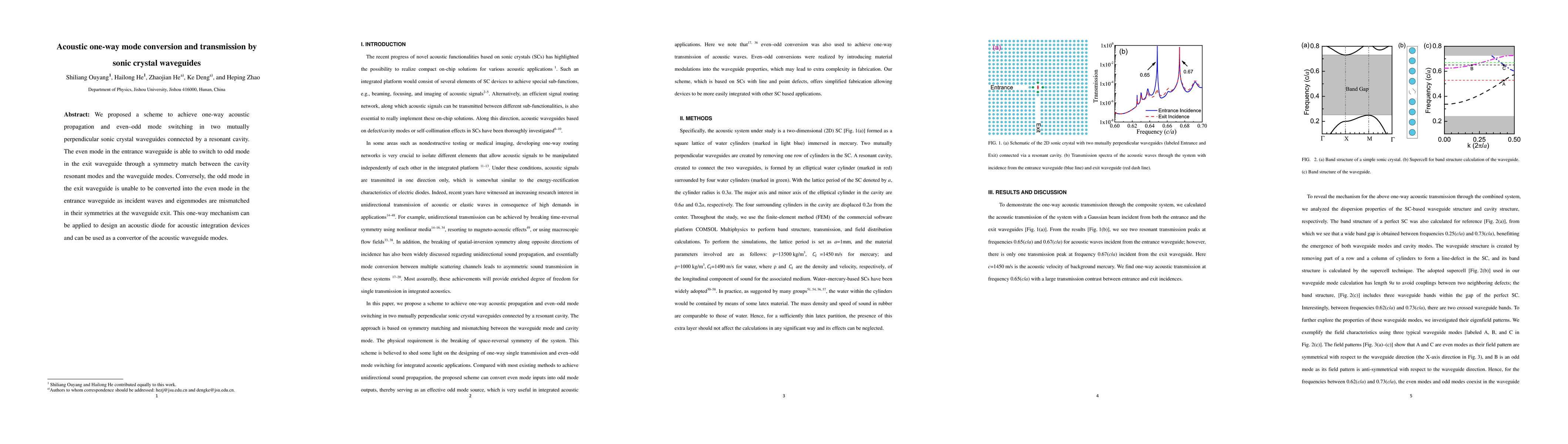 This paper proposes a method for one-way acoustic propagation using sonic crystal waveguides connected by a resonant cavity, enabling mode conversion from even to odd modes. The asymmetric symmetry match prevents reverse conversion, potentially enabling the design of acoustic diodes.