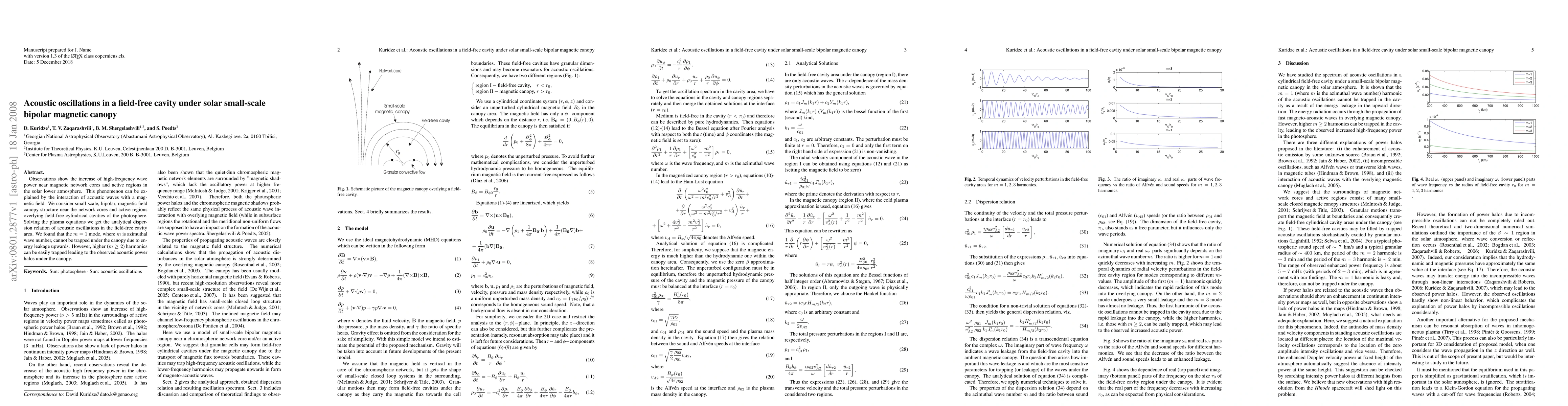 This paper investigates acoustic oscillations in a field-free cavity influenced by a small-scale bipolar magnetic canopy over the solar photosphere. The study reveals that while m = 1 modes leak energy upwards, higher harmonics (m ≥ 2) can be trapped, explaining the observed acoustic power halos near magnetic network cores and active regions.
