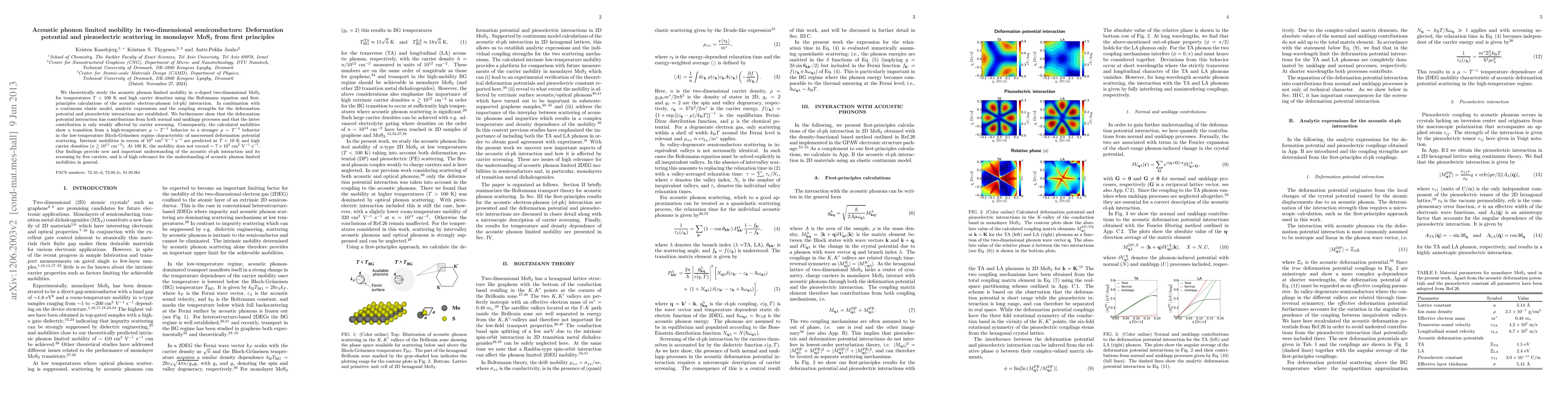 We theoretically study the acoustic phonon limited mobility in n-doped two-dimensional MoS2 for temperatures T < 100 K and high carrier densities using the Boltzmann equation and first-principles calculations of the acoustic electron-phonon (el-ph) interaction. In combination with a continuum elastic model, analytic expressions and the coupling strengths for the deformation potential and piezoelectric interactions are established. We furthermore show that the deformation potential interaction has contributions from both normal and umklapp processes and that the latter contribution is only weakly affected by carrier screening. Consequently, the calculated mobilities show a transition from a high-temperature \mu T^{-1} behavior to a stronger \mu T^{-4} behavior in the low-temperature Bloch-Gruneisen regime characteristic of unscreened deformation potential scattering. Intrinsic mobilities in excess of 10^5 cm^2 V^{-1} s^{-1} are predicted at T < 10 K and high carrier densities (n > 10^{11} cm^{-2}). At 100 K, the mobility does not exceed ~7 x 10^3 cm2 V^{-1} s^{-1}. Our findings provide new and important understanding of the acoustic el-ph interaction and its screening by free carriers, and is of high relevance for the understanding of acoustic phonon limited mobilities in general.