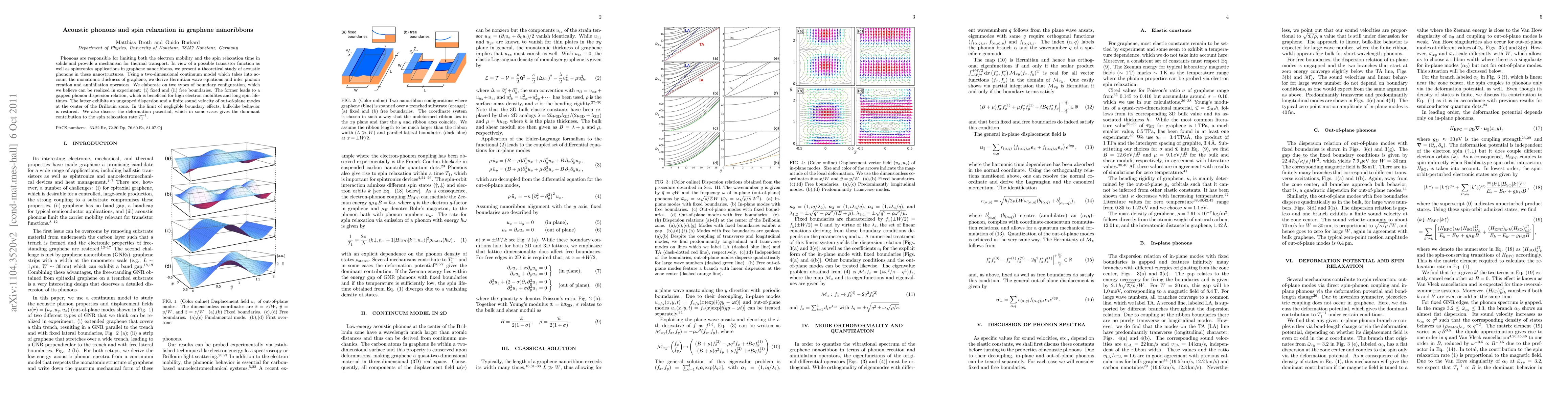 The paper presents a theoretical framework for analyzing acoustic phonons in graphene nanoribbons using a two-dimensional continuum model, incorporating monatomic thickness and considering two types of boundary configurations.