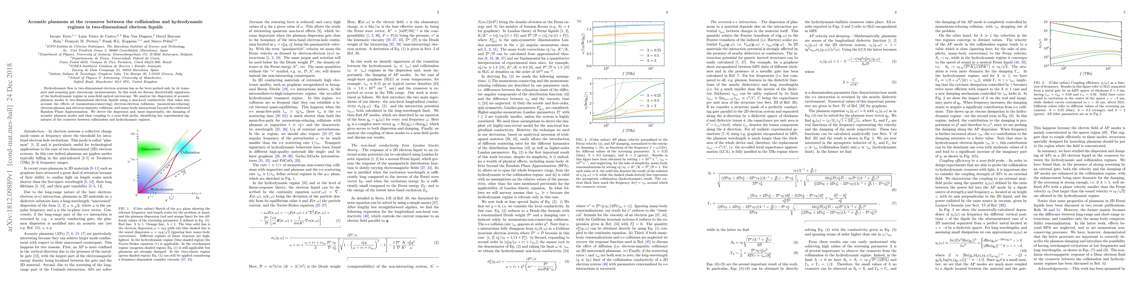 This paper theoretically explores the hydrodynamic regime in two-dimensional electron liquids through near-field optical microscopy, analyzing the dispersion and damping of acoustic plasmon modes. It identifies experimental signatures of the transition between collisionless and hydrodynamic regimes using non-local conductivity models.