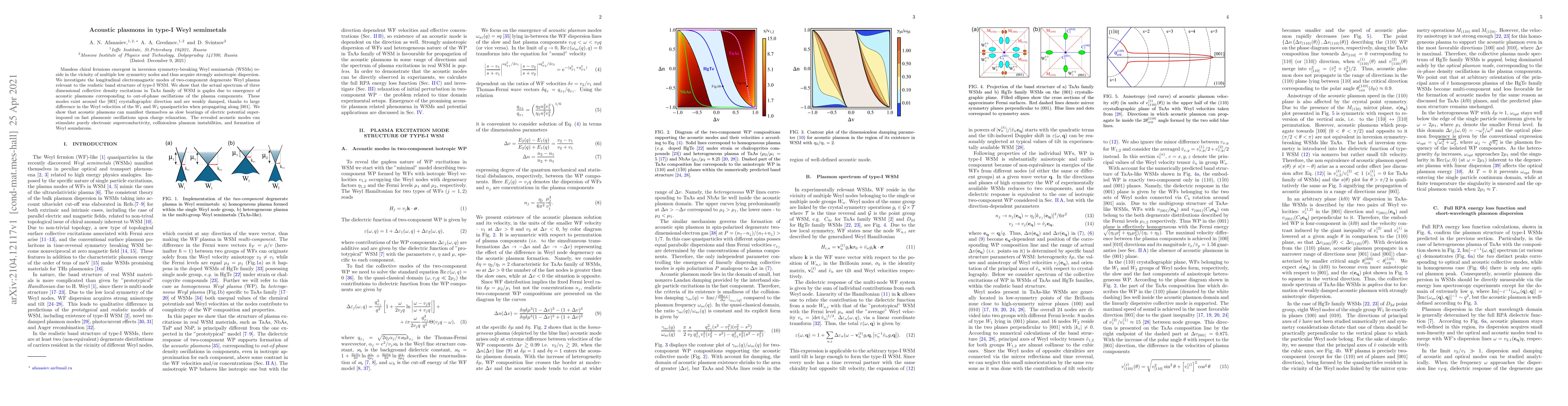 This research investigates the longitudinal electromagnetic modes in type-I Weyl semimetals, revealing that the spectrum of collective density excitations is gapless due to the emergence of acoustic plasmons. These weakly damped modes, resulting from out-of-phase oscillations of plasma components, can stimulate various electronic phenomena such as superconductivity and plasmon instabilities.
