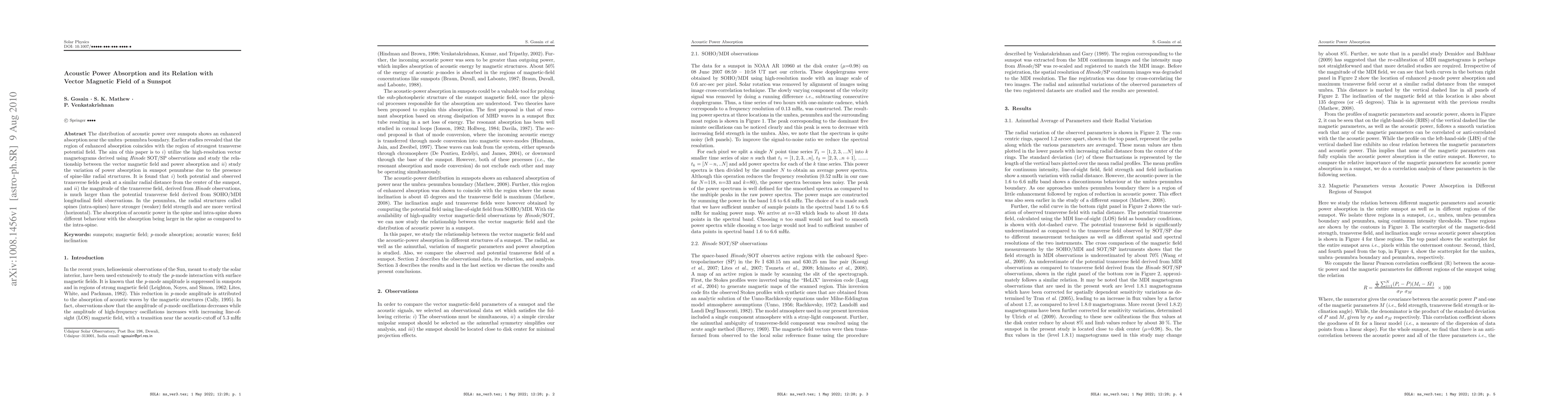 This paper investigates the relationship between acoustic power absorption in sunspots and their vector magnetic field, finding that enhanced absorption occurs near the umbra-penumbra boundary where the transverse magnetic field is strongest. It reveals that the observed transverse field is significantly larger than the potential field, and that spine-like radial structures in the penumbra have different magnetic and acoustic absorption characteristics.