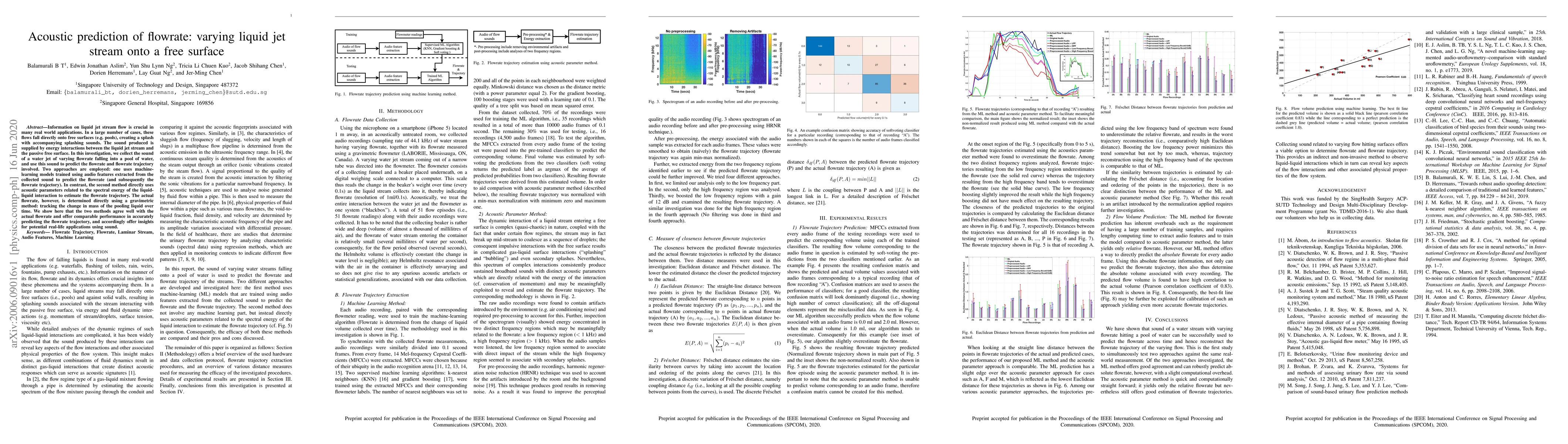 Researchers developed two methods to predict liquid jet stream flowrate based on sound patterns, with one using machine-learning models and the other using acoustic parameters, both achieving comparable accuracy in predicting flowrates.